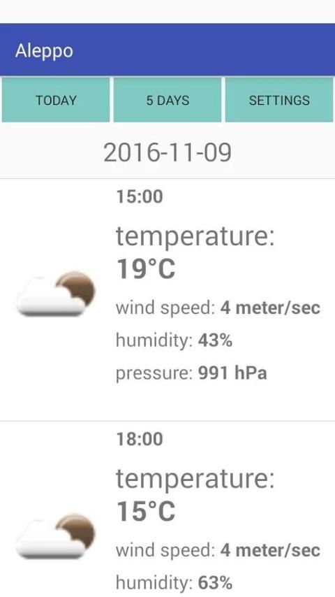 Weather Aleppo, a simple and convenient app showing weather forecast for the city of Aleppo.
