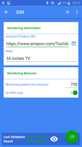 It allows to define a monitoring period and if monitoring it's to be performed only when WIFI is on.