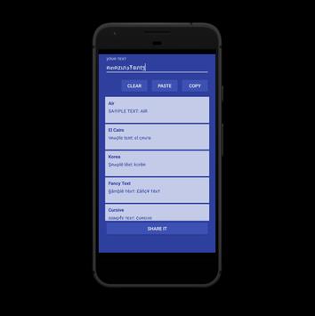 You can type message in Cool Amazing Fancy Text fonts with the selected font and Copy. You can paste copied text in any other apps or use Share Option. Use these fonts in Instagram. Just type message in app & Copy. Then you can open Instagram App and paste it any where you want. Share your great ideas, suggestions to your friends with funny text messages. You can paste it to the bio. Then your bio looks different.