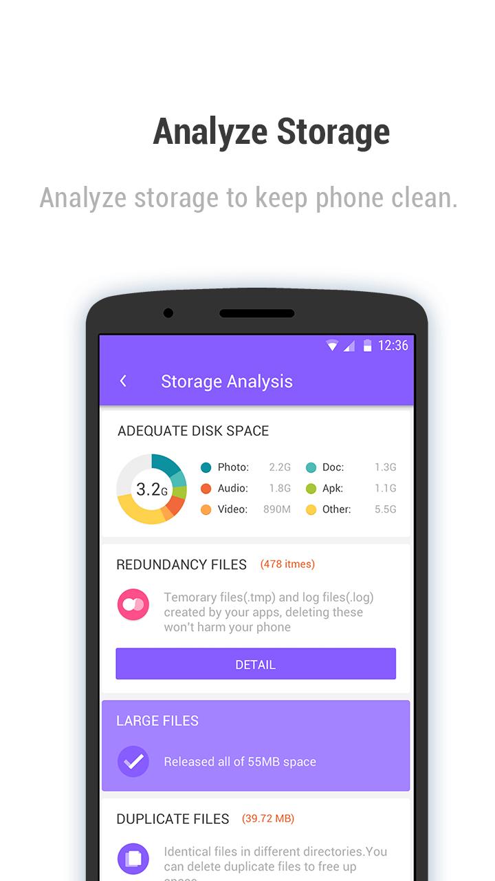 Get instant results to your searches in internal storage and microSD card. Users can browse files by category, e.g. image, music, video, apps, etc.
