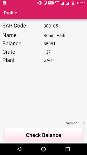 Menu –> Profile -> AMDs name, Available credit limit balance & Crate balance as per SAP. The app is linked with SAP real time. It shows latest updated SAP balances. “Check Balance” button can be used to refresh balances.