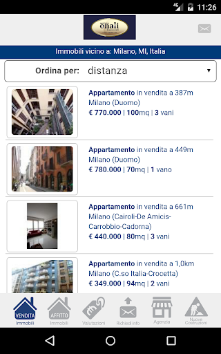 - ricercare in tempo reale immobili "around me" (tramite GPS)