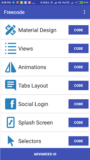 User can now find all code and illustration in a single android application. This application cover all the material design themes as well as social logins. Custom demonstration and