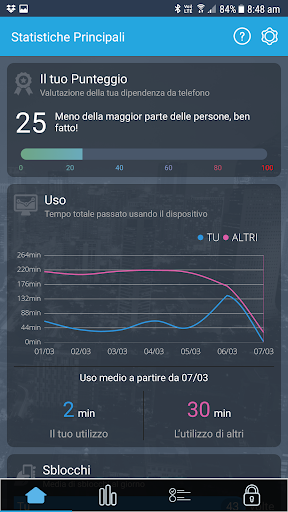 E non finisce qui, poiché sarai in grado di sapere se usi il tuo telefono più o meno degli altri utenti. La conoscenza è potere, e sarai poi tu a decidere come intervenire, gestendo il tuo utilizzo del telefono. L'app ti offre infatti la possibilità di gestire, bloccare altre app o limitarne l'utilizzo, ma ancora una volta, questo è interamente a tua discrezione.