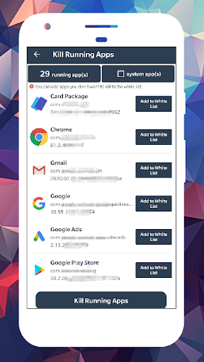 • Kill apps running in background