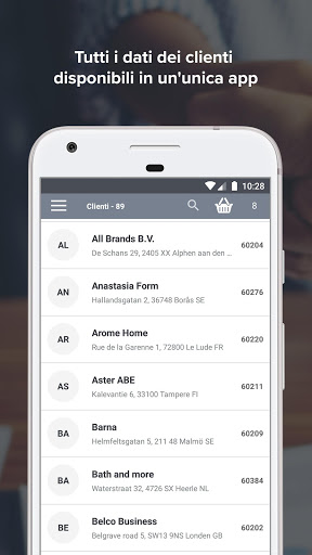 • Visualizza i clienti ed il catalogo in modalità online ed offline