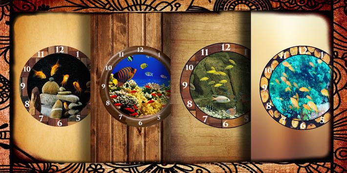 This application is a showcase of beautiful fishes rocks bushes under water with analog clock.