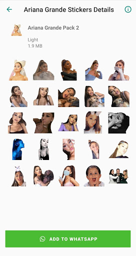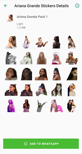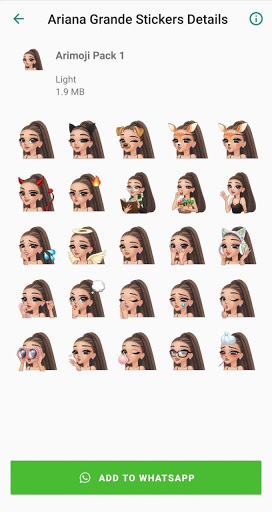 Pacchetti di sticker per WhatsApp della famosa cantante pop Ariana Grande