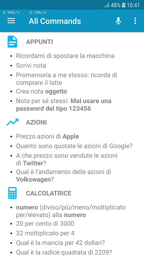 Assistant Commands non è un'applicazione ufficiale di Google è una guida a tutti i comandi vocali per Google Assitant che possono essere utilizzati con la ricerca vocale.