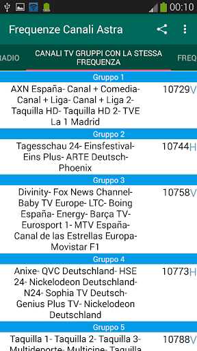 Tutte le frequenze nei seguenti satelliti nella stessa orbita 19,2 ° Est: Astra 1KR / Astra 1L / Astra 1M / Astra 1N.