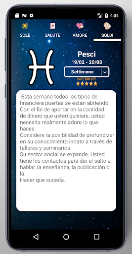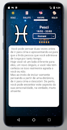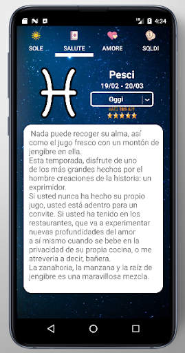 Leggi il tuo oroscopo del giorno e l'astrologia per gli oroscopi dei tuoi cari per tutti i segni dello zodiaco, condividi le tue impressioni e previsioni astrologiche con gli amici sui social network più popolari, fatti uscire per nuovi oroscopi settimanale e previsioni astrologiche e segui gli aggiornamenti dell'astrologia oggi con questa applicazione. Coinvolgi la mente e l'anima con citazioni classiche con autori di epoche diverse, con arguzia, saggezza e parole che ispirano.