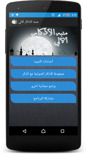 Ora e dopo aver aspettato il tuo nuovo programma "Allarme automatico", che sarà un'esperienza unica unica mostrando gli oscori e le forniture sullo schermo del telefono e molto distintamente, aggiungendo agli avvisi vocali dei migliori lettori senza dover entrare nel programma. Bagnato La tua lingua nel ricordo di Dio mentre sei scoppiato per il telefono! Anche se parli con gli amici .. Durante i colloqui, l'applicazione è molto speciale ed è stata programmata per lavorare in modo intelligente ... in modo da non dimenticare mai la menzione di Dio.