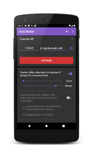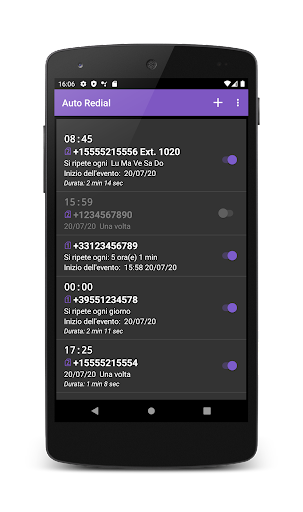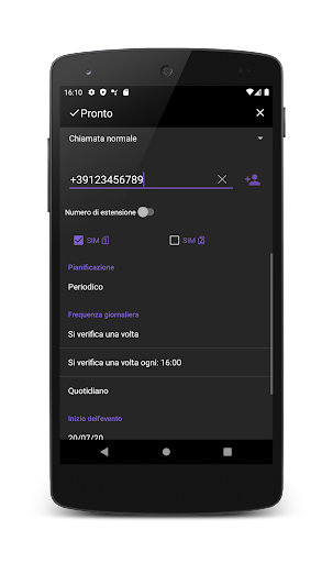 L'app ha il supporto per le chiamate pianificate. È possibile specificare una pianificazione per la riselezione automatica con parametri diversi.