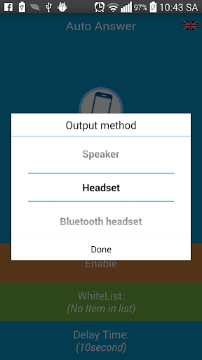 This application allows you to automatically answer a call after receiving an incoming telephone call. This is very useful when it is not possible to be distracted, to accept the call.