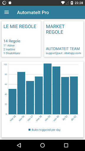 AutomateIt Pro possiede tutti i vantaggi della versione gratuita ed è una versione senza pubblcità, senza pop-up con alcune fantastiche funzionalità nuove ed avanzate. (TUTTE le funzionalità bloccate della versione fratuita vengono sbloccate con AutomateIt Pro)