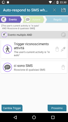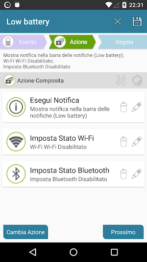 • Segnale Sensore – utilizza tutti i sensori del tuo dispositivo per l’azione desiderata. Questo include l’utilizzo di tutti i sensori supportati da Android – Accelerometro, Luminosità, Prossimità, ecc.