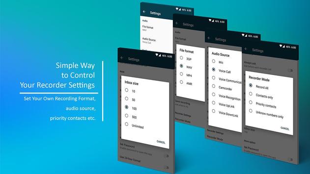 Call Recorder also boasts of providing different recording mode like recording all the calls, or only those calls which are in your contacts list or set priority contacts which you select or record only those conversations which are unknown to you. Each and every choice is yours.