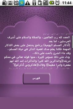 برنامج عربي يشتمل على الاذكار التي تهم المسلم في اليوم والليلة وهي: أذكار الصباح، أذكار المساء، أذكار الاستيقاظ، أذكار النوم، أذكار بعد الصلاه وأذكار اخرى