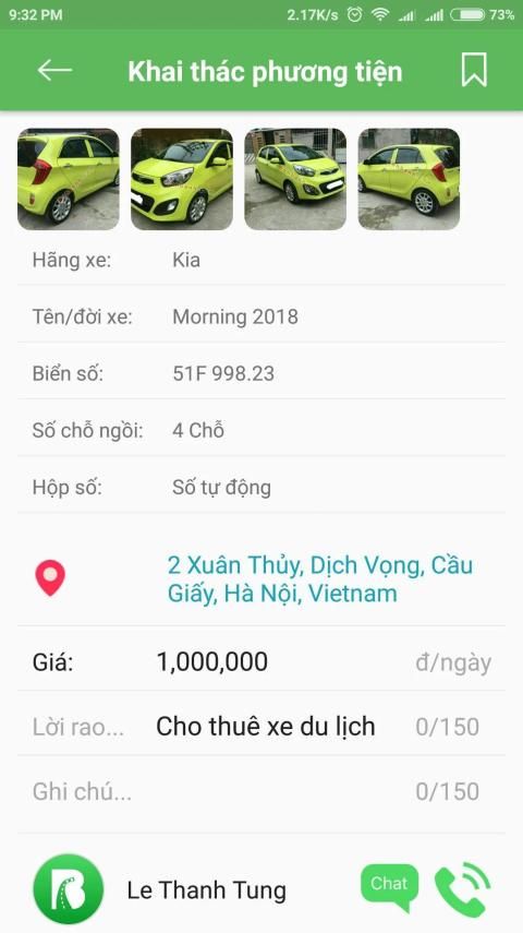 - Working mode: improve income by posting vehicles rental information (cars, motorbikes, bicycles, trucks, tricycles, boats) in two driving modes and self-driving. Customers search and rent cars right in the area you travel every day.
