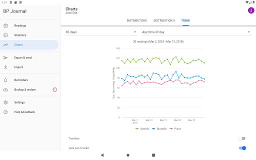 L'app BP Journal funge da app di accompagnamento per il monitor della pressione sanguigna di casa.L'app consente di registrare le letture della pressione sanguigna, visualizzare le tendenze e inviare rapporti al proprio medico o al medico professionale.Con il supporto multi-profilo, tenere traccia della pressione sanguigna anche degli altri membri della tua famiglia.
