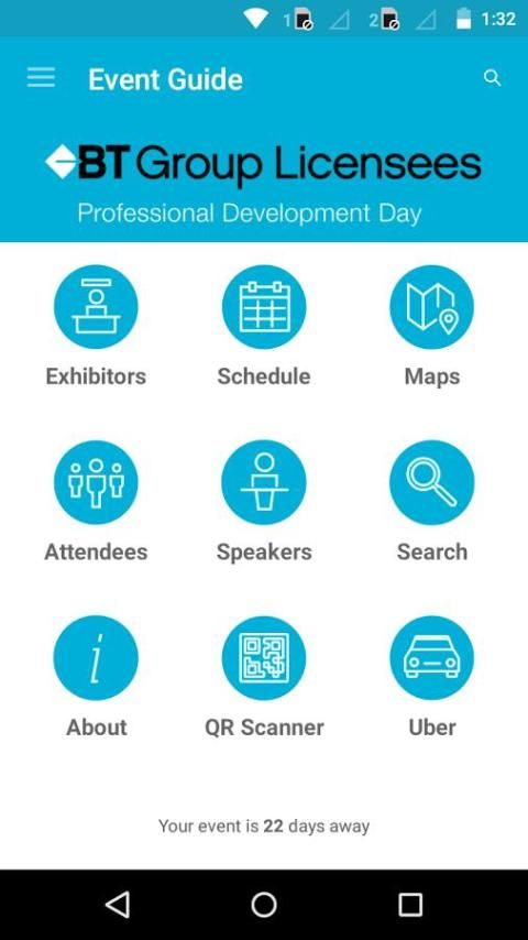 The BT Group Licensees event mobile app gives you access to everything you need to know about the Professional Developments Days and other events that you may want to attend.