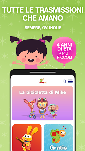 BabyTV è il modo perfetto per introdurre tuo figlio ad una gamma di concetti ed è adatto per i bambini e i ragazzini in tutte le fasce di età (di età pari o inferiore ai 4 anni)