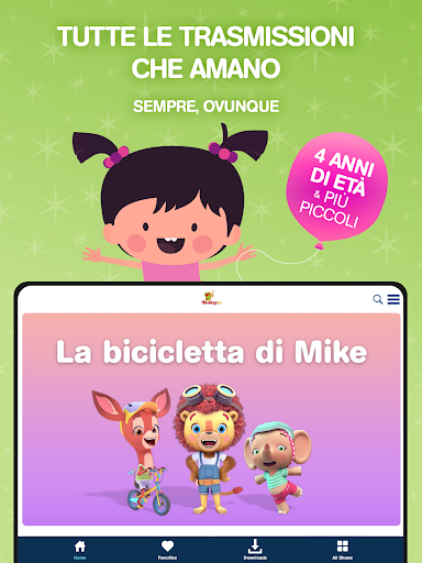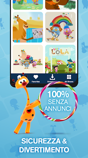 L'app gratuita include una categoria gratis, che comprende una selezione di spettacoli e canzoni più amati, per consentirti di divertirti insieme a tuo figlio.