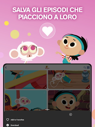 ● Preferiti: crea una playlist con gli episodi e le canzoni che tuo figlio