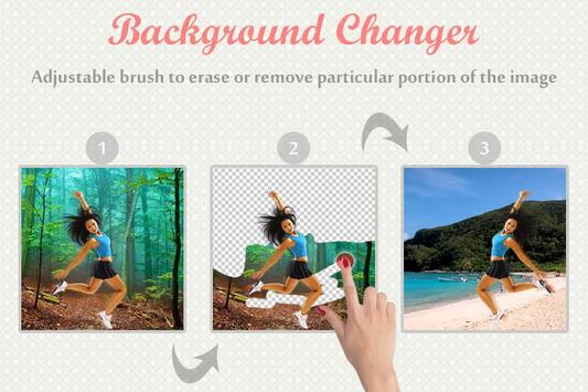 Background Changer consente di modificare lo sfondo della foto che puoi cancellare o rimuovere qualsiasi parte dello sfondo. Supporta una buona collezione di temi di sfondo, più strumenti per cancellare la foto di sfondo e anche gli effetti fotografici