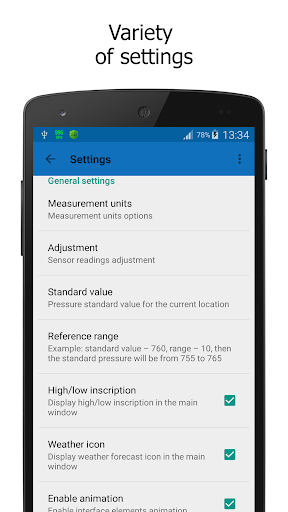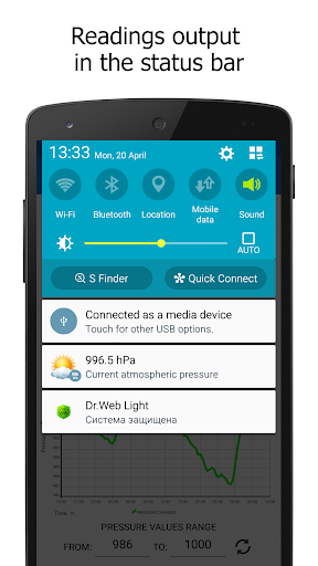 Il principale Funzione dell'applicazione è la visualizzazione della pressione dell'aria nella barra di stato del dispositivo.