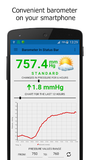 Barometro nella barra di stato - Un'applicazione per la misurazione della pressione atmosferica sui dispositivi smart Android dotati di un sensore di pressione.