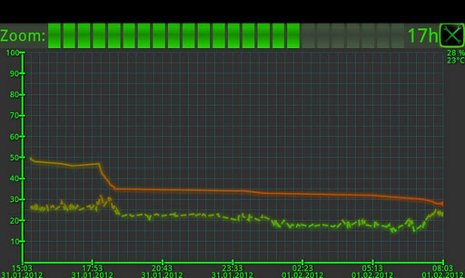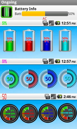 This app is free without any commercials and it just need 2harmless permissionsAttention:Appkillers can disturb this App no updates of the notificationsymbol. Please add the program therefore to the exception list of your Appkiller.Features: shows batterylevel in the Statusbar 8 different colors and 2 Fonts available shows batterylevel, temperature C or F and voltage provides a chart for the batterylevel and temperature for the last 24h include two widgets with free selectable colorsBattDroid ist a app to show and monitoring your Battery.It is also possible to show the batterylevel in the infobar. Here you can choose between various colors6 at the moment.On the Monitorscreen you can see the battery and temperatureprogress for the last 24h.3 different widgets are also included.