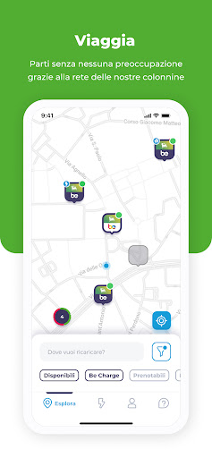1. Hai sempre a portata di app la mappa con i punti di ricarica, la distanza e i tempi di percorrenza per raggiungere la colonnina più vicina, puoi anche filtrare per disponibilità e potenza.