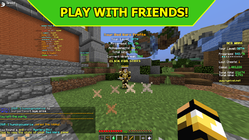 La mappa dei Bedwars ti porta alle Isole Flying, dove devi combattere con altri giocatori (entrambi online su Server e in modalità giocatore singolo). Devi custodire il tuo letto in modo da poter andare a letto non appena la notte inizia!