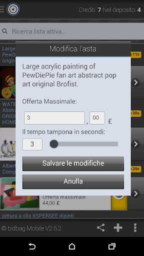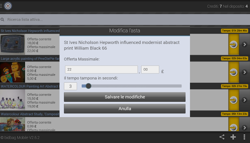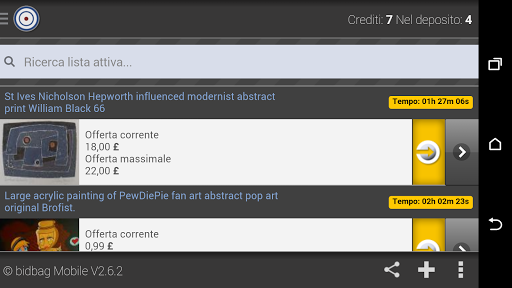 BidBag mobile - il sniper affidabile per consentire all'ultimo secondo le offerte per le aste di eBay