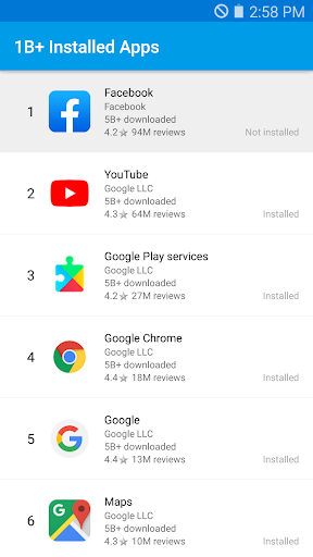 Con questa applicazione, puoi vedere tutto l'elenco delle applicazioni installato più di un miliardo di Google Play.È facile da reindirizzare a Google Play per installare o aggiornare l'applicazione.