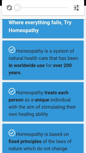 homeopathy system and can read details of 12 biochemic salts. This APP can be used as handy APP for curing diseases with natural treatment of homeopathy. You can discuss your case symptoms also or can find natural remedy of a disease.
