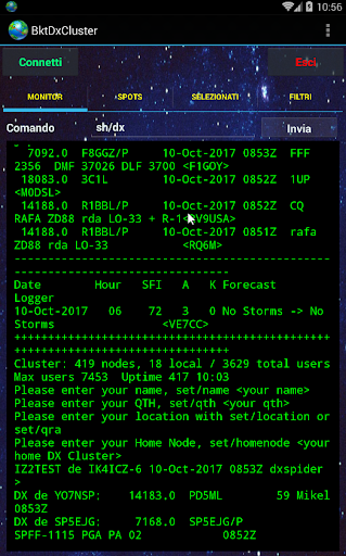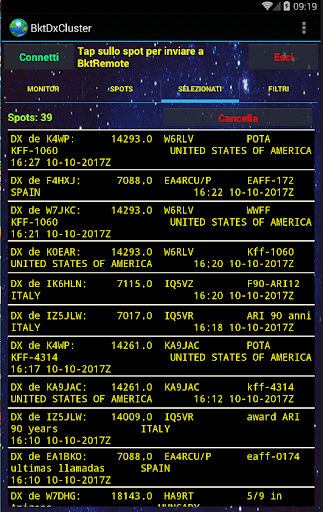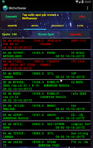 BktDxCluster si connette ai nodi DXSpider telnet e permette di visualizzare e inviare spot dx, inoltre, tramite BktRemote (https://play.google.com/store/apps/details?id=bktremote.iz2bkt) può settare il ricetrasmettitore sulla frequenza dello spot dx o inviare uno spot leggendo la frequenza direttamente dal ricetrasmettitore