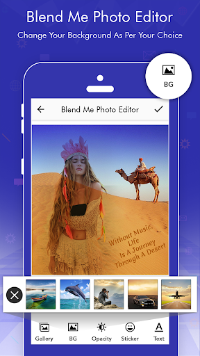 Blend me photo editor contains lot of background images which can make your photo more beautiful.“Photo Blender Editor ", an amazing blender camera with unique style to blend and mix your photos together.