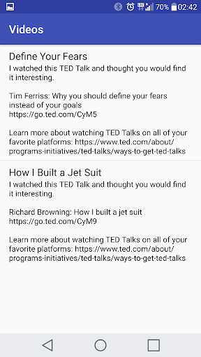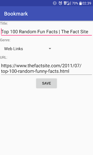 Whenever you find an article, video or link you want to read or watch later, just share it to 'Bookmark Links'. You can manage the links by putting them in different genres based on your interest.