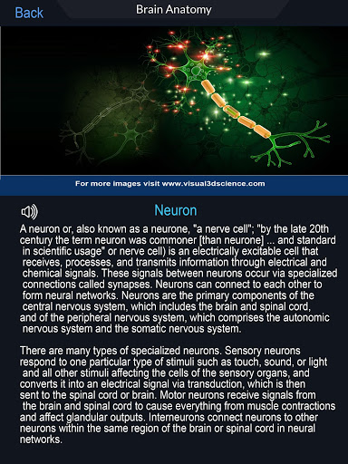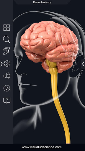 Brain Anatomy Pro.Dà agli utenti un aspetto approfondito al cervello.Permettere loro di selezionare, visitare Xray, nascondere e mostrare parti del cuore e visualizzare animazione in tempo reale, disegnare o bianco sullo schermo e condividere screenshot, pronuncia audio per tutti i termini di anatomia e altro.