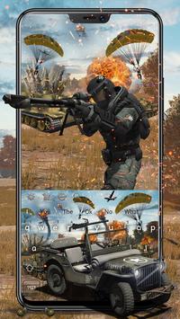 Brave Soldier Keyboard Theme È un'App per tastiera con tastiera di sfondo Sfondo Sfondo Blast Blast Blast Showering War per telefoni e tablet che ha molti temi SMS Skins per te.