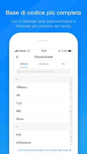 Possediamo il più grande database IR al mondo con supporto di telecomandi 10W e 3751 marchi di apparecchi. Puoi scegliere tra le nostre opzioni IR ufficiali che vengono testate manualmente per la comprovata affidabilità o le opzioni IR condivise fornite dai nostri utenti in anni che potrebbero essere adatte a modelli non popolari.