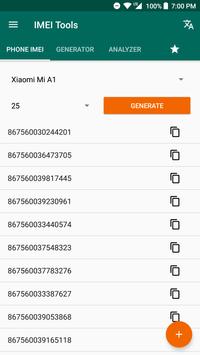 ✔ The ‘PHONE IMEI’ tab contains a list IMEIs for different phones (including latest phones). And guess what? You can generate up to 500 thousand IMEIs from a single tap without any No Duplicate. All generated IMEIs are Unique.