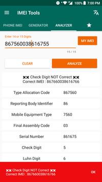 ✔ The ‘ANALYZER’ tab can be used to analyse IMEI pieces by piece, get your IMEI information & check if an IMEI is valid or Not.