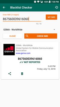 Blacklist Checker is used to check if the IMEI you supplied has been Reported Stolen, Lost or Blocked. This is a VERY USEFUL tool to avoid buying or using phones with reported IMEIs.