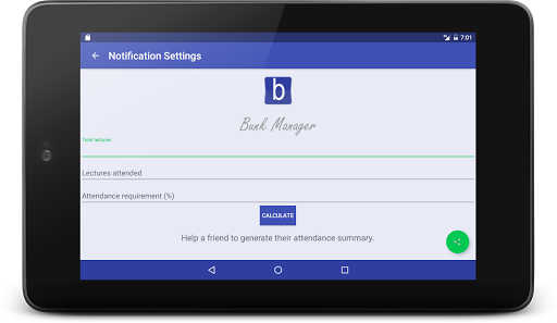 As the name suggests this app helps you to record and analyse your bunks; isn't this much required these days? So let's help you out with your truancy skills and set it a level higher.