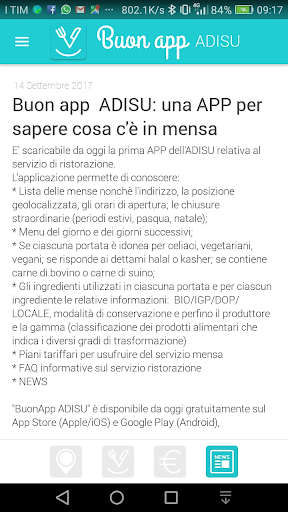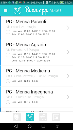 L’app consente di conoscere le informazioni dei punti di ristoro ADISU.
