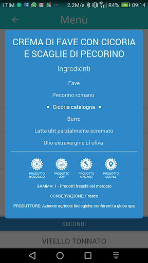 - se l'ingrediente utilizzato è BIO/IGP/DOP/LOCALE e la relativa gamma (classificazione che indica i diversi gradi di trasformazione);