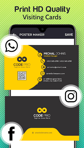 Business Card Maker hanno anche la caratteristica fondamentale di Visiting Card Maker, Logo Maker, Poster Maker, Invito Maker e Flyer Designer & Thumbnail Maker app.